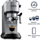 اسپرسو ساز دلونگی مدل EC685پرفروشترین اسپرسوساز برند محبوب دلونگی که بواسطهی زیبایی و جنس خوب بدنه برندی پذیرفتهشده در بین ایرانیان به حساب میآید. این قهوهساز خانگی با طراحی شکیل زیبایی آشپزخانهی شما را تضمین میکند. ابعاد کوچک 35x17x35، وزن 5 کیلوگرمی و جنس بدنه استیل با عمر بالا عامل اصلی محبوبیت این دستگاه دلونگی است. Delonghi ec685 دارای مخرن آب 1.1 لیتری در بخش پشتی است که برای تهیه چندین فنجان قهوه کافی میباشد. توان مصرفی اسپرسوساز دلونگی 1350 وات بوده و فشار بخار در این دستگاه 15 بار است که عدد قابل توجهی برای دستگاه خانگی محسوب میشود . شما علاوه بر اسپرسو میتوانید با کمک بازوی استخراج قهوه و بخار، به راحتی قهوه خود را با کرم صاف و نرمی بدست اورید همچنین لاته، کاپوچینو و آب جوش با این قهوه ساز تهیه کنید. در قسمت زیرین دستگاه سینه چکه گیر وجود دارد که هنگام ریزش مایع، قهوه یا آب، داخل این مخزن ریخته و از کثیف شدن کابینت یا میز شما جلوگیری میکند. این دستگاه دارای پنل گرمکننده در قسمت بالایی، صفحه نمایش LCD و حالت خاموشی خودکار است.