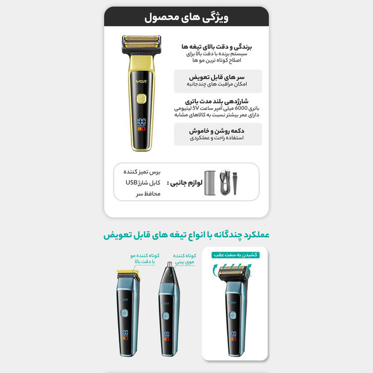 تجهیزات همراه: کابل شارژ USB , برس تمیزکننده , محافظ